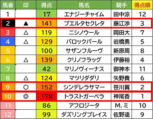 kota独自ロジックによる、各馬が今回発揮するであろうパフォーマンスを完全数値化。