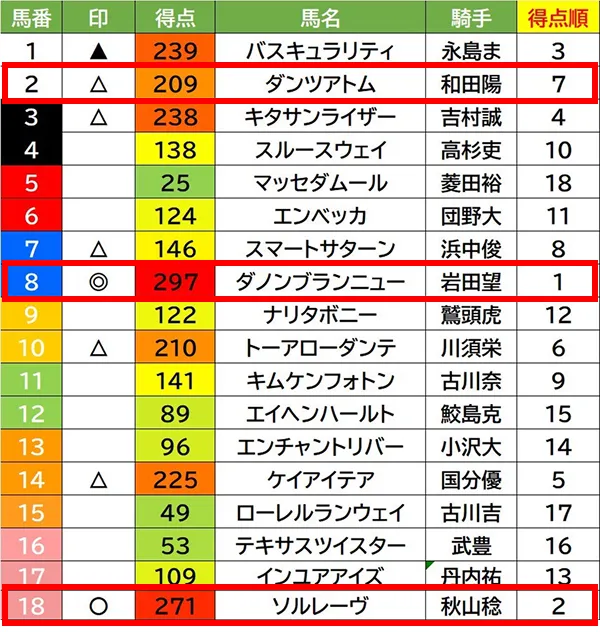 kota独自ロジックによる、各馬が今回発揮するであろうパフォーマンスを完全数値化。