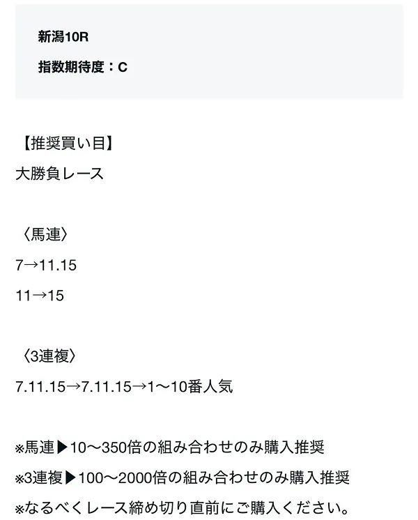 ※推奨買い目は中央版のみ中央推奨買い目サンプル