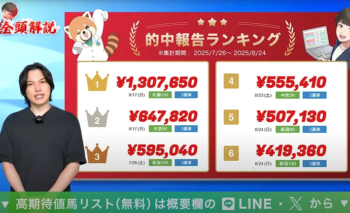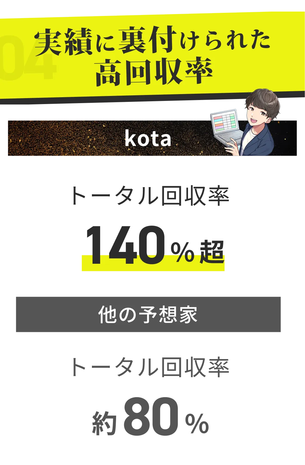 10万レース以上の検証実績と、平均回収率140%超というデータに基づき、感覚や運任せではない予想を提供しています。